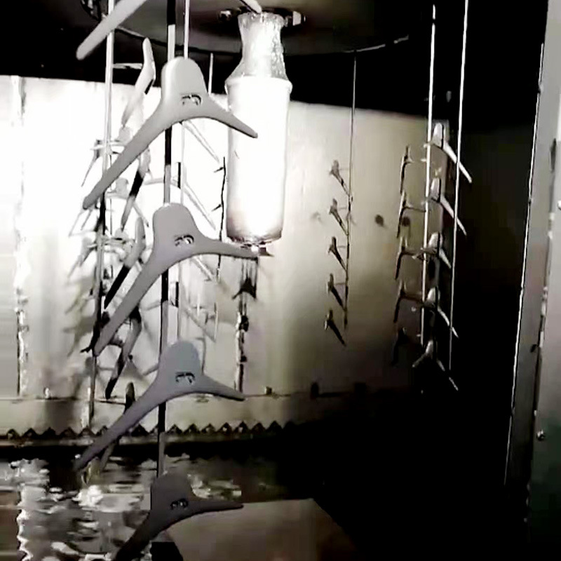 注意:吊掛具對靜電噴涂的影響是較大的。這是因為長時間大批量生產后,吊掛具作為接地極同樣很容易吸附上涂料,如不定期清理、更換,形成較高的電阻,大大降低靜電吸附效果。另外,應特別注意工件的懸掛方式,以盡量減少噴涂死角。漆膜未干之前,應妥善保護,避免烈日直曬或嚴寒冰凍。