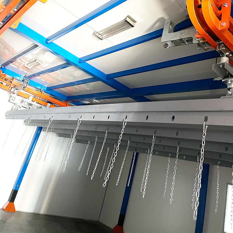 注意:吊掛具對(duì)靜電噴涂的影響是較大的。這是因?yàn)殚L時(shí)間大批量生產(chǎn)后,吊掛具作為接地極同樣很容易吸附上涂料,如不定期清理、更換,形成較高的電阻,大大降低靜電吸附效果。另外,應(yīng)特別注意工件的懸掛方式,以盡量減少噴涂死角。漆膜未干之前,應(yīng)妥善保護(hù),避免烈日直曬或嚴(yán)寒冰凍。
